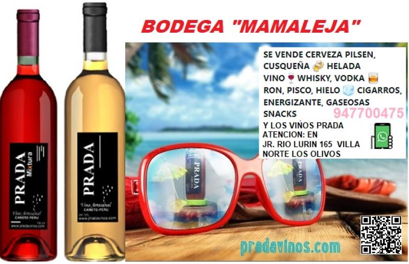 BODEGA "MAMALEJA" CERVEZAS, RON , SNACK, GOLOSINAS VINOS DE CALIDAD "PRADA" PILSEN, CRISTAL , GASEOSAS...WASAP 947700475 JR. RIO LURIN 165 VILLA NORTE - LOS OLIVOS